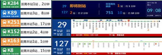 屏幕采用55寸触摸式贴合屏,为市民展示公交车辆信息的预报,通过电子屏显示和更新信息,市民可以一目了然地看到公交车的动态位置、运行情况、到站时间、车内拥挤度、以及公交车和公交站的相对距离等有关信息,让等车的市民心里有数,合理安全出行乘车计划。